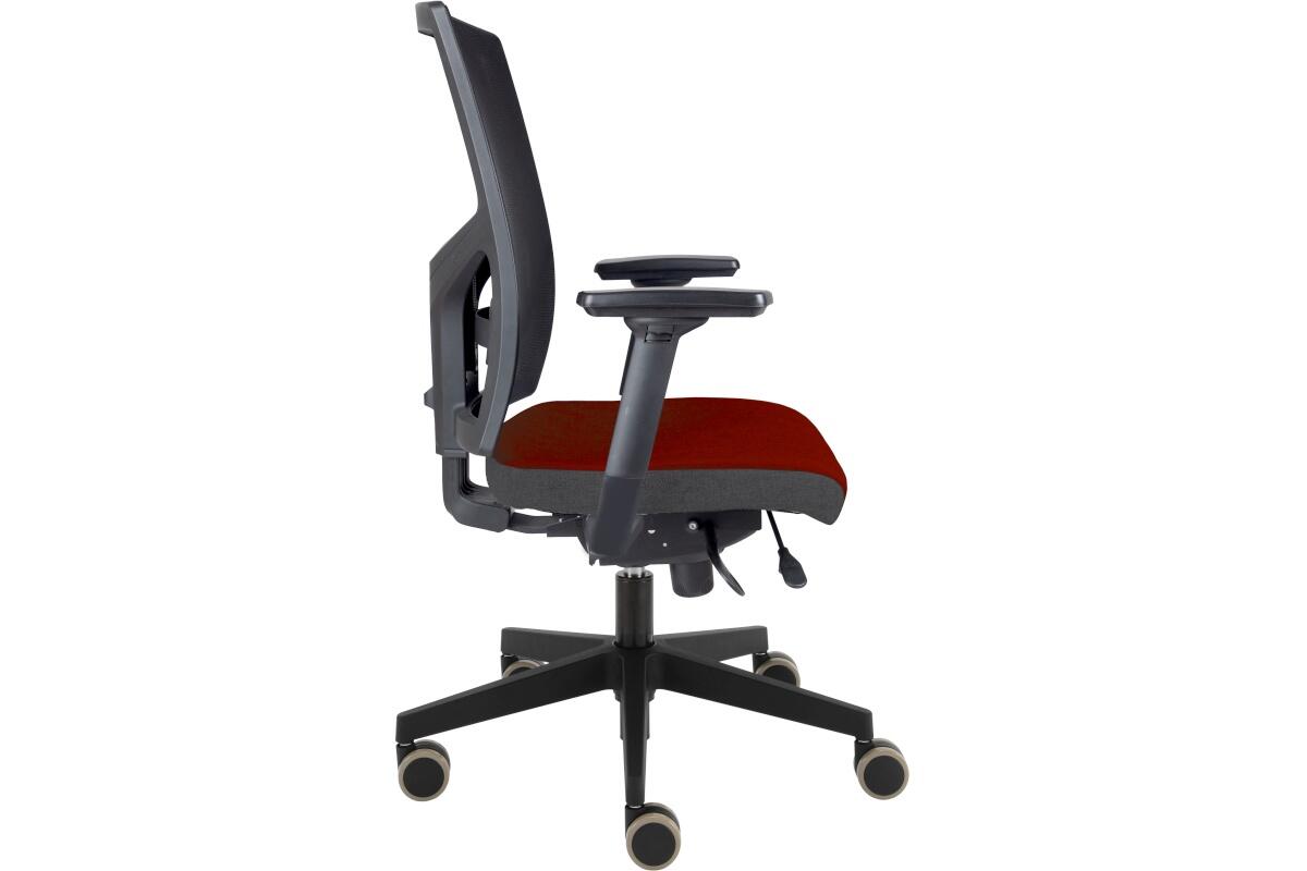 Židle kancelářská GAME šéf VIP, T-synchro, područky P54, kříž černý Loop 640 mm, kolečka gumová, sedák 4011 červený, bok 8078 šedý, opěrák síť černá