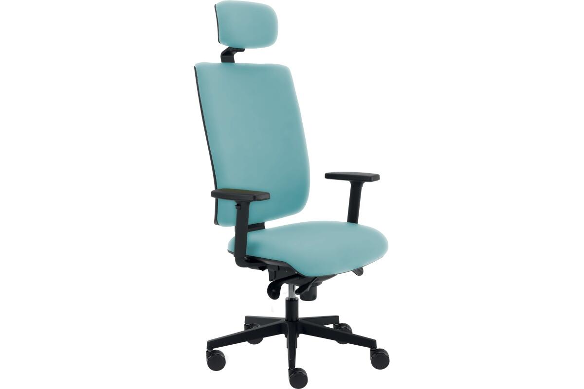 Židle kancelářská Kent šéf, T-synchro, hlavová opěrka 3D, područky P54, posuv sedáku, kolečka pogumovaná, koženka KZ78 medical zelená