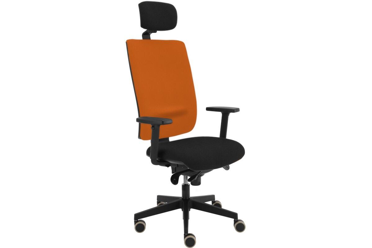 Židle kancelářská Kent šéf, TB-Synchro, hlavová opěrka 3D, bederní opěrka, područky P54, posuv sedáku, kříž černý Loop 640 mm, kolečka pogumovaná, sedák a opěrka 8033 černá, opěrák 3012 oranžový
