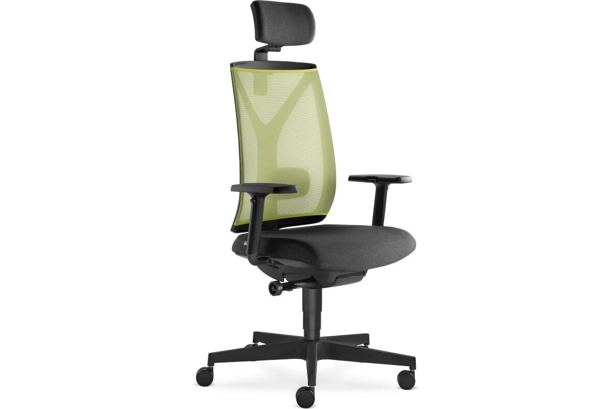 Židle kancelářská Leaf 503-SYB, hlavová opěrka, výškově stavitelný opěrák, bederní opěrka, područky BR-207, posuv sedáku, sedák a opěrka D8033 černá, opěrák RAY914 zelený