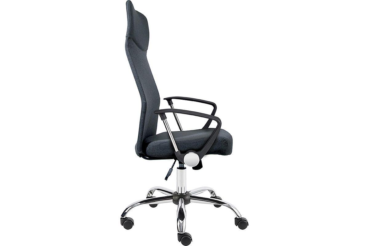 Židle kancelářská Medea, hlavová opěrka, područky s PP topem, kříž chromovaný, celočalouněná, tmavě šedá