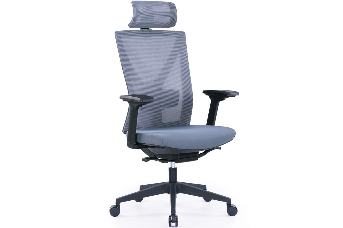 Židle kancelářská Nyon, hlavová opěrka, výškově stavitelný opěrák, bederní opěrka, područky, šedá