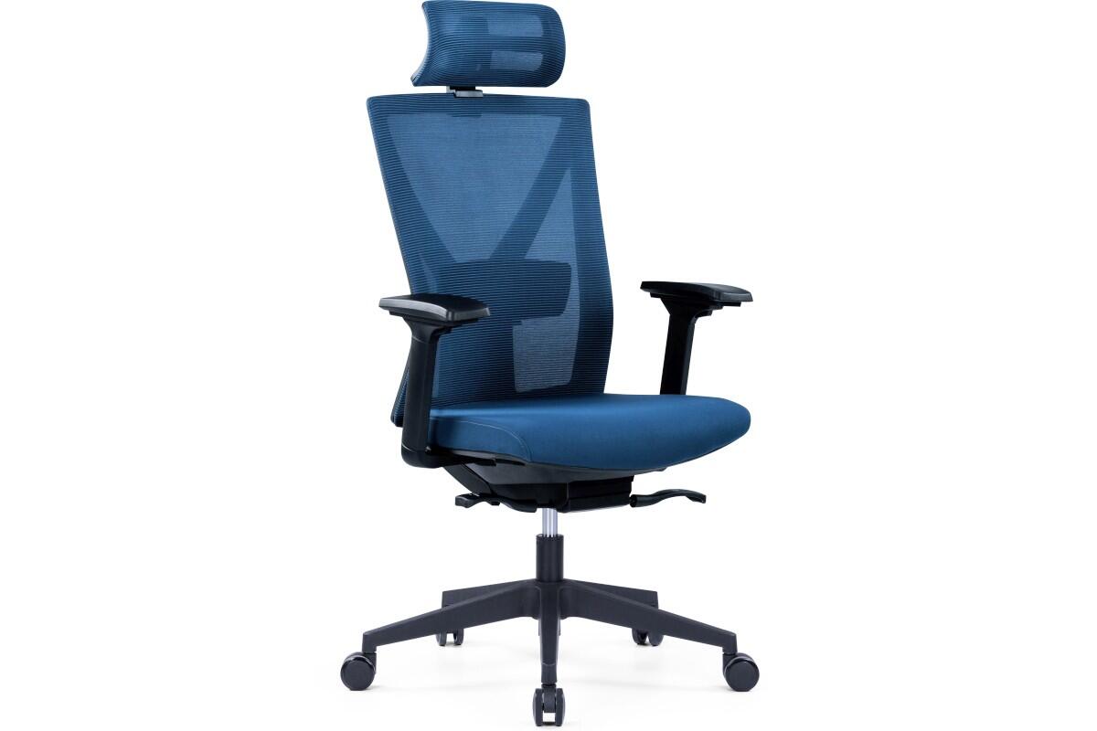 Židle kancelářská Nyon, hlavová opěrka, výškově stavitelný opěrák, bederní opěrka, područky, tmavě modrá