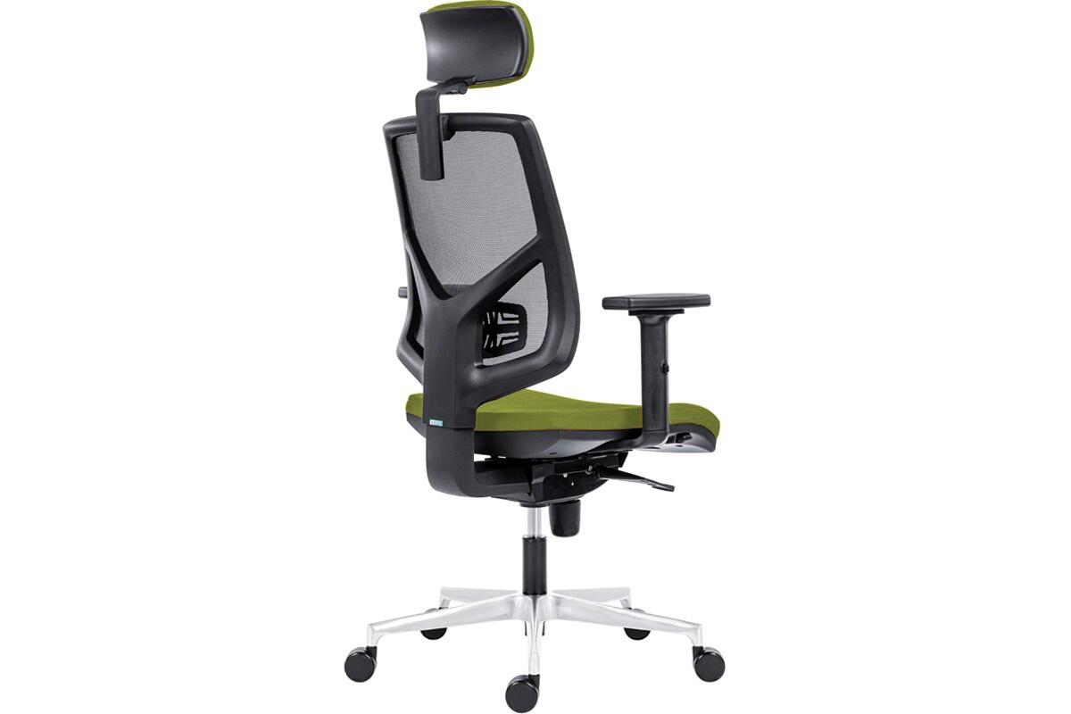 Židle kancelářská Skill 1750-SYN, hlavová opěrka, výškově stavitelný opěrák, područky BR16, posuv sedáku, kříž hliníkový, opěrák černá síť BI5005, sedák a opěrka zelená BN13