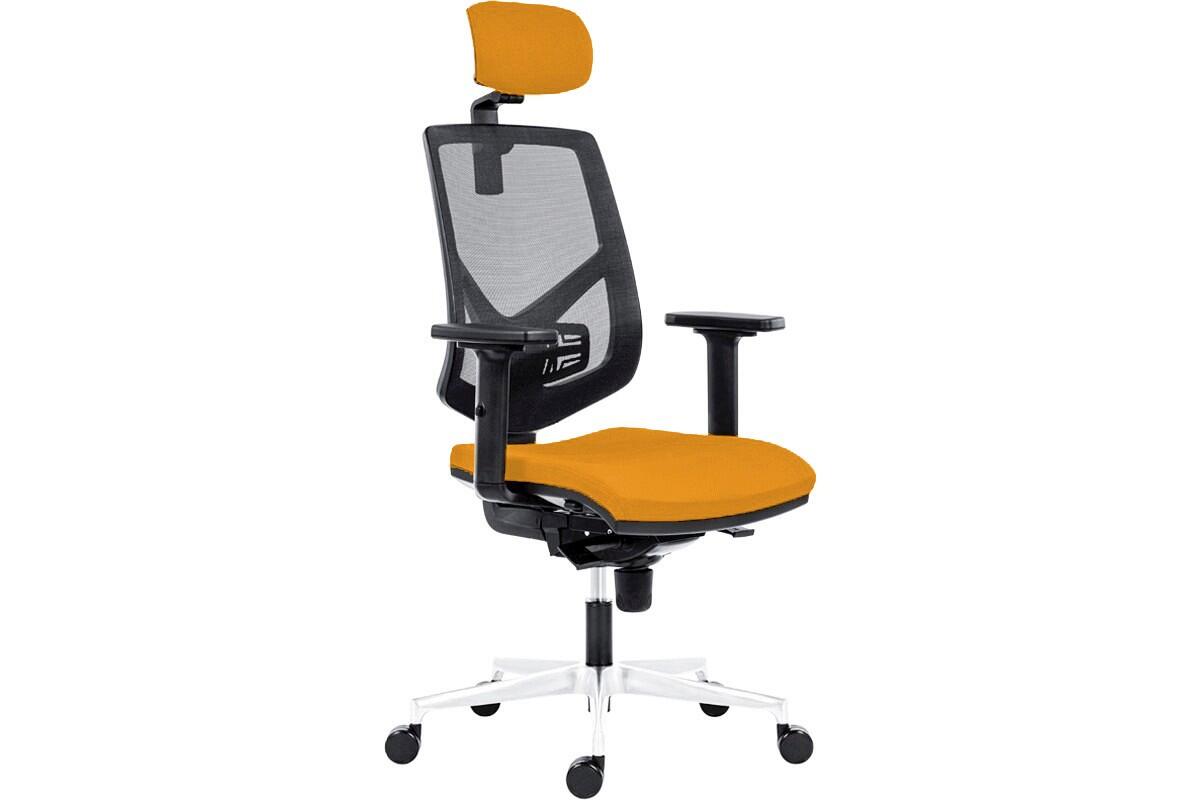 Židle kancelářská Skill 1750-SYN, hlavová opěrka, výškově stavitelný opěrák, područky BR16, posuv sedáku, kříž hliníkový, opěrák černá síť BI5005, sedák a opěrka žlutá BN2