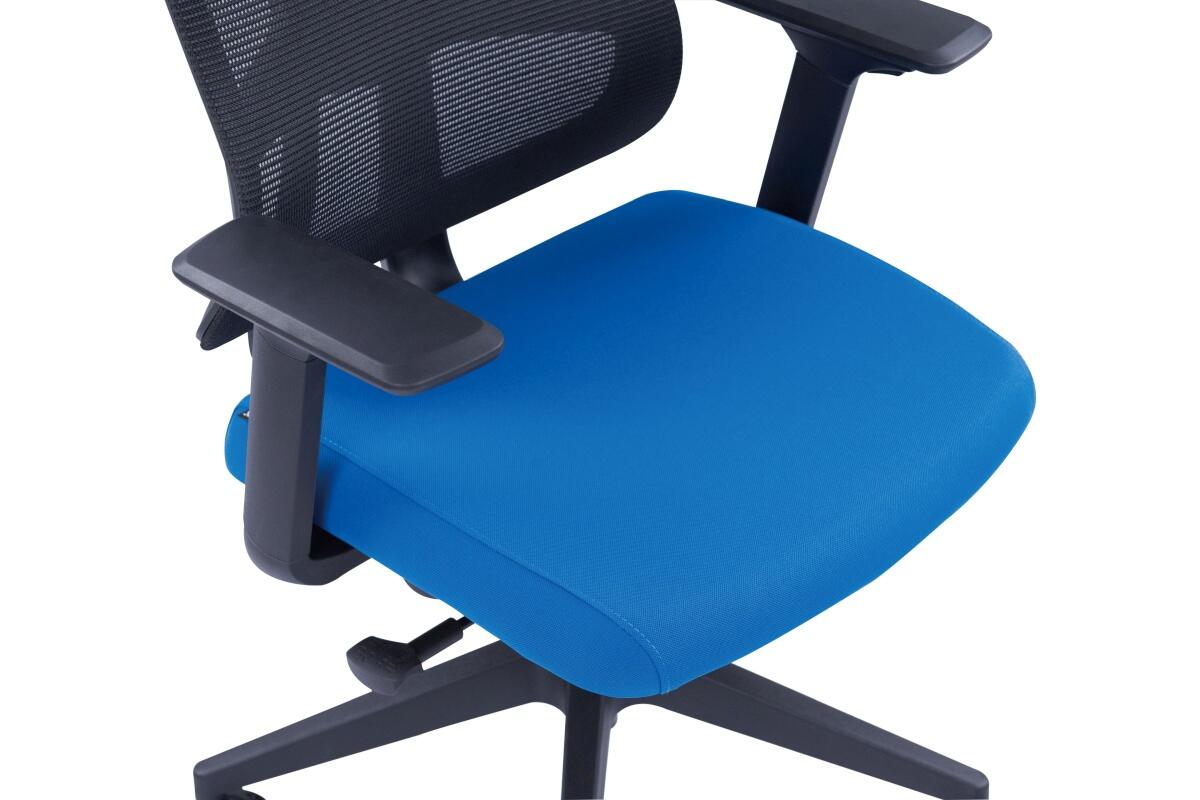 Židle kancelářská Slide, hlavová opěrka, područky, posuv sedáku, opěrák černá síť, sedák modrý
