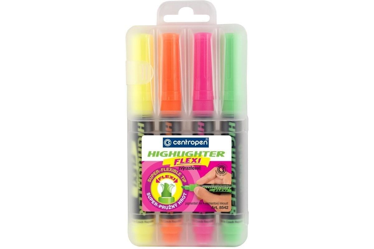 Zvýrazňovač Centropen Flexi 8542, 1-5 mm, klínový hrot, sada 4 ks