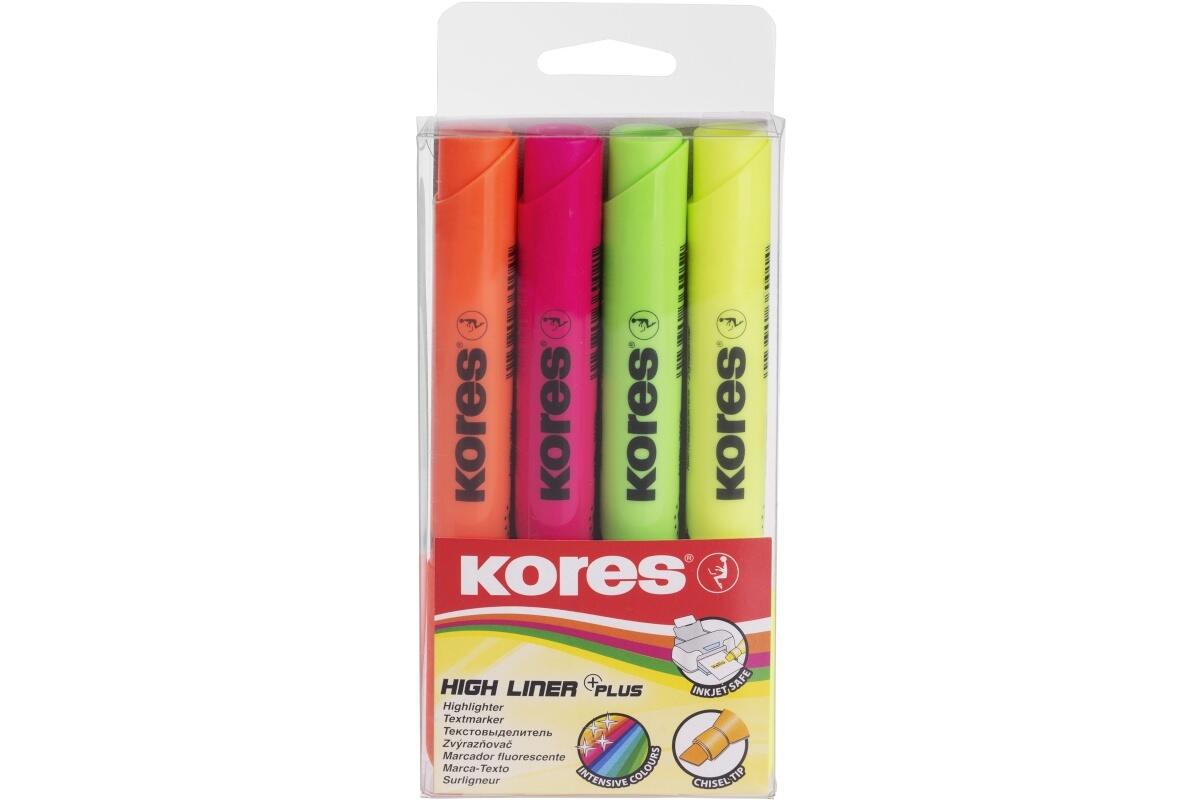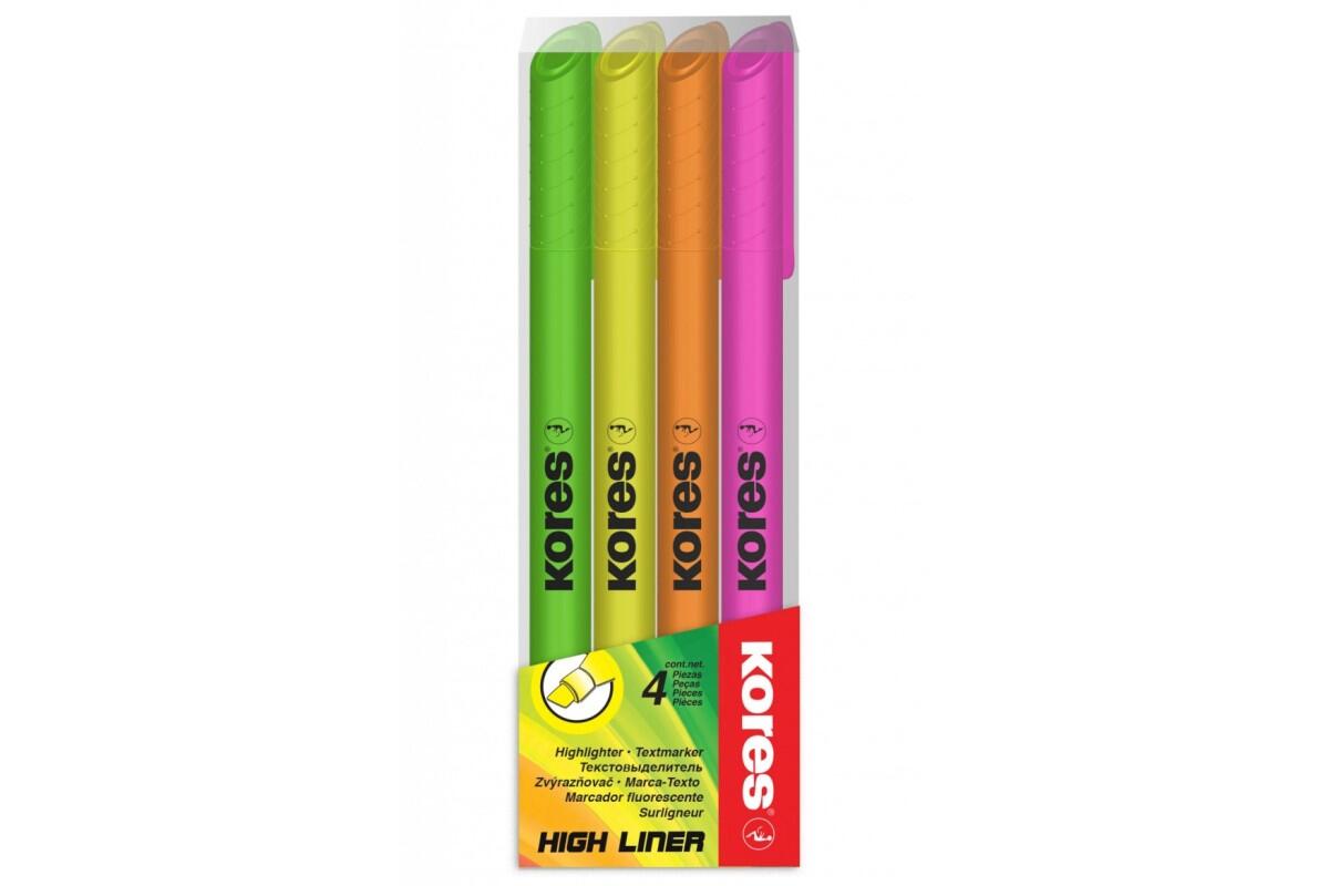 Zvýrazňovač Kores High Liner, 3-5 mm, klínový hrot, sada 4 ks