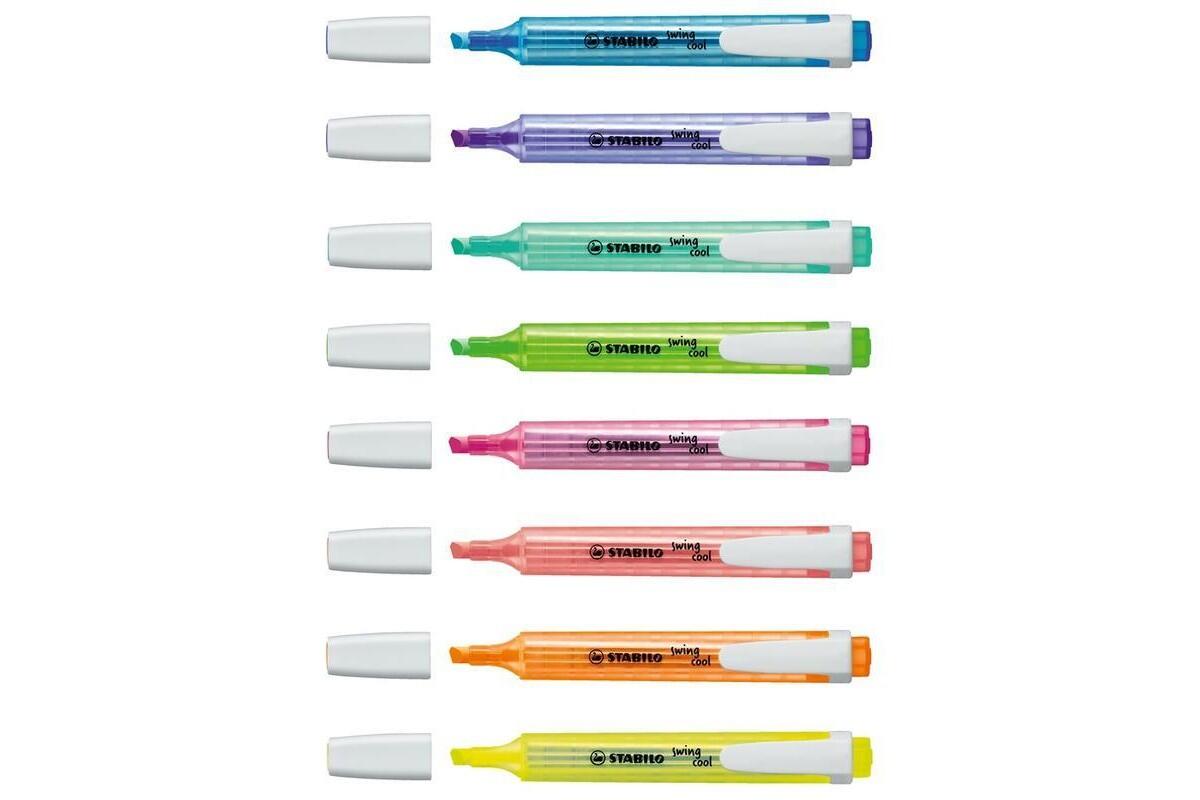 - zvýrazňovač STABILO swing cool, oblíbený zejména u studentů a školáků díky kvalitnímu zpracování, neklouzavé úchopové zóně a kapesní velikosti